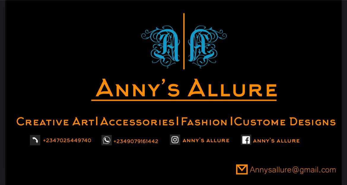 At Annyâs Allure, we curate a distinctive collection of fashion accessories and embellished designs for both men and women, celebrating the richness of African culture, personal identity, and divine purpose. Our brand is rooted in the vision of creating art that speaksâart that reflects tradition, inspires confidence, and glorifies the Creator through beauty and multiplication. Our collections feature premium waist beads, bold bracelets, elegant watches, and adorned neck beads, each handcrafted with intention to highlight strength, elegance, and individuality. Whether embracing the bold masculinity of layered accessories or the graceful femininity of beaded adornments, our pieces are designed to elevate every look and embody personal expression with authenticity. We go beyond accessoriesâAnnyâs Allure also specializes in embellishment of outfits and custom costume designs, where every detail tells a story. From hand-sewn beadwork to culturally inspired embroidery, our garments are transformed into wearable artâfusing traditional African aesthetics with modern fashion in a way that honors both heritage and innovation. At our core, we create not just for beauty, but for purpose. Every piece is an expression of Africaâs vibrant culture, its majestic artistry, and the divine instruction to âbe fruitful and multiplyâ (Genesis 1:28). In every waist bead strung, every outfit adorned, and every accessory styled, we obey this callingâmultiplying creativity, confidence, and cultural pride across the globe. Annyâs Allure: Where African beauty meets divine purposeâcrafted to be worn, remembered, and multiplied.